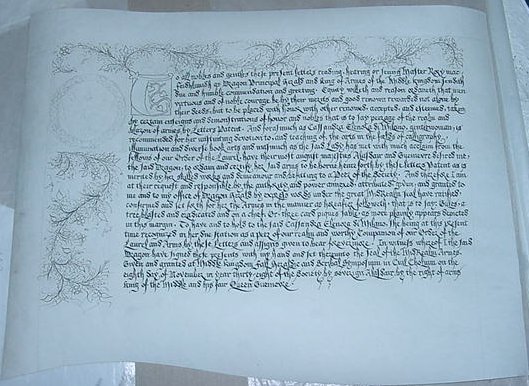 To all nobles and gentles these present letters reading, hearing or seeing Master Rory mac Feidhlimidh as Dragon Principal Herald and King of Armes of the Middle Kingdom sendith due and humble commendation and greeting.