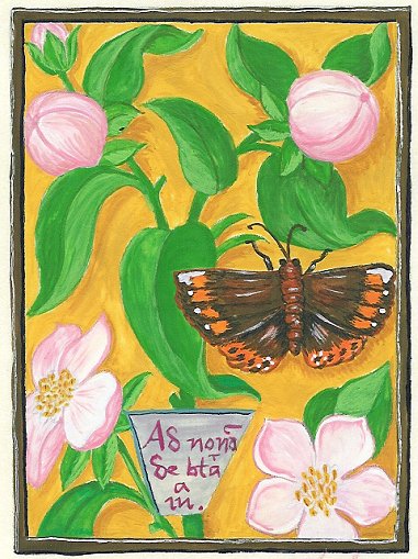 13th Century Franco Flemish Botanical. This piece is watercolor on opaline vellum and was made as a gift for my Grandmother on her 75th Birthday. |