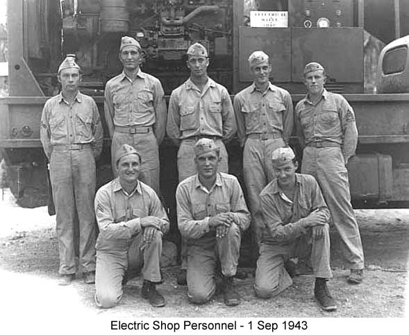 Special thanks to Norman Woodard for identification of Electric Shop Personnel.